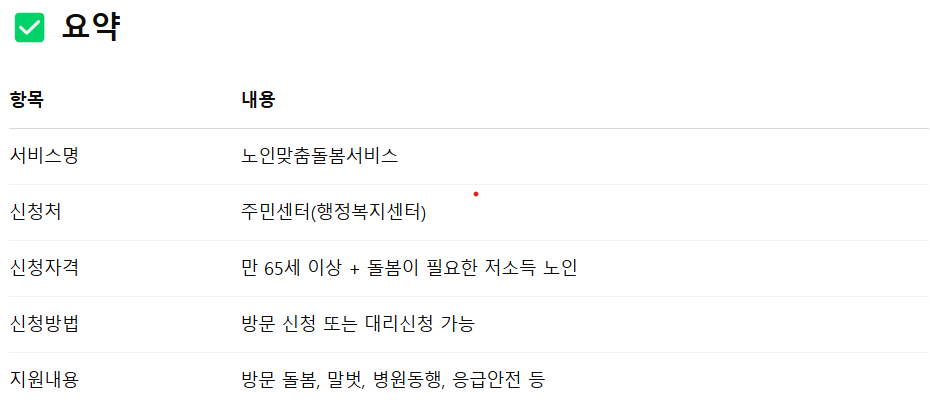 ※중복 서비스 불가: 장기요양 등급자(요양보호사 방문 중인 경우)는 신청 제한 있음.
